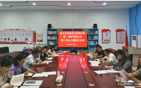 6月20日,遵义市科协党支部召开2024年第二季度党员大会暨六月份主题党日活动。会议(活动)由党支部书记赵振东主持,市科协党支部全体党员参加。