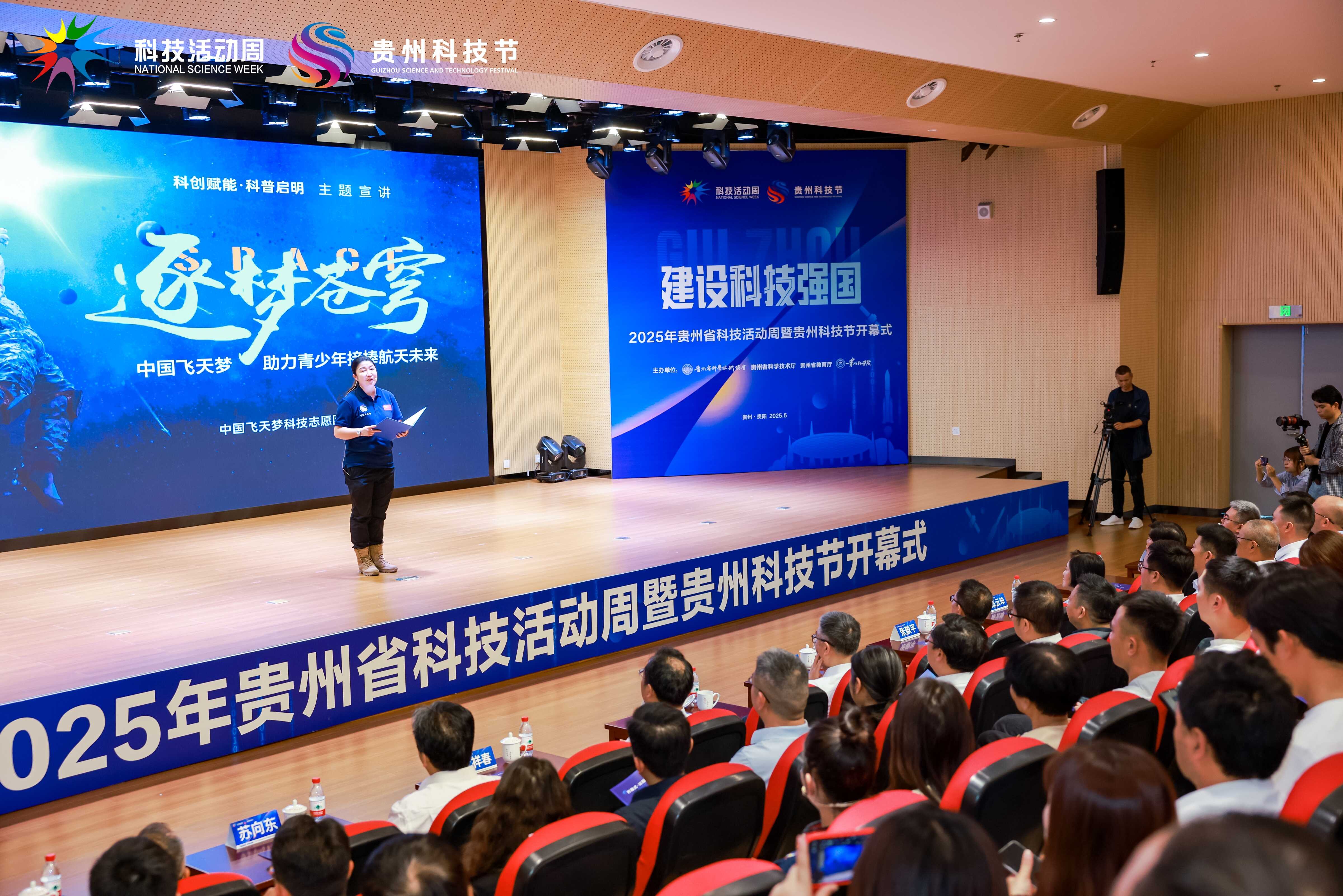 5月24日,2025年贵州省科技活动周暨贵州科技节开幕式上,中国飞天梦科技志愿团副团长张海走上宣讲台,分享了团队用科普播种梦想、用行动点燃希望的故事——