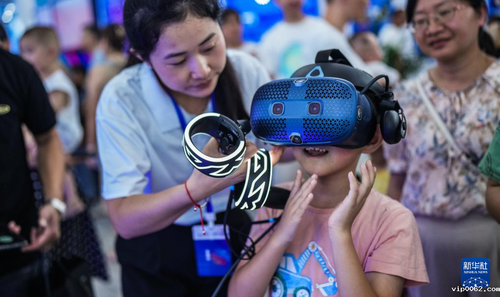 8月5日,小朋友在使用VR设备体验“桥旅融合”。新华社记者 陶亮 摄