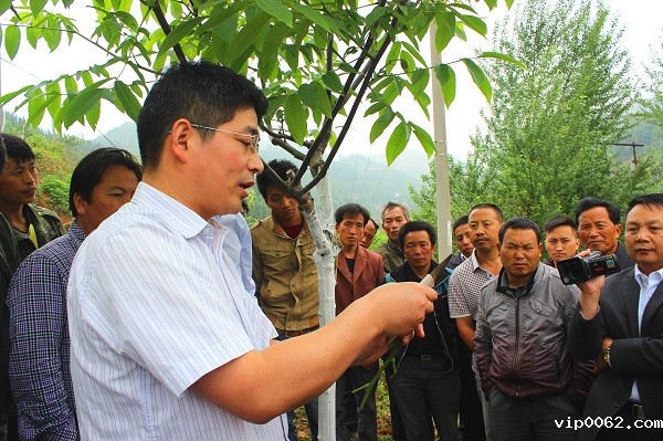 俗话说“喊破嗓子,不如做出样子。”为了让老百姓信服,潘学军还找了块地做给他们看!渐渐地,老百姓们开始信赖他,还时不时找他为自家核桃“把脉开方”。对农户的技术指导,潘学军都是面对面的谈,手把手的教。在核桃基地,他总是随时携带果树剪刀,给农户示范剪枝整形。为了让老百姓听得懂,他学会了很多赫章“土话”:“比如我告诉老乡,好核桃的标准就是胀不胀、白不白、香不香’,胀’就是饱满的意思。”