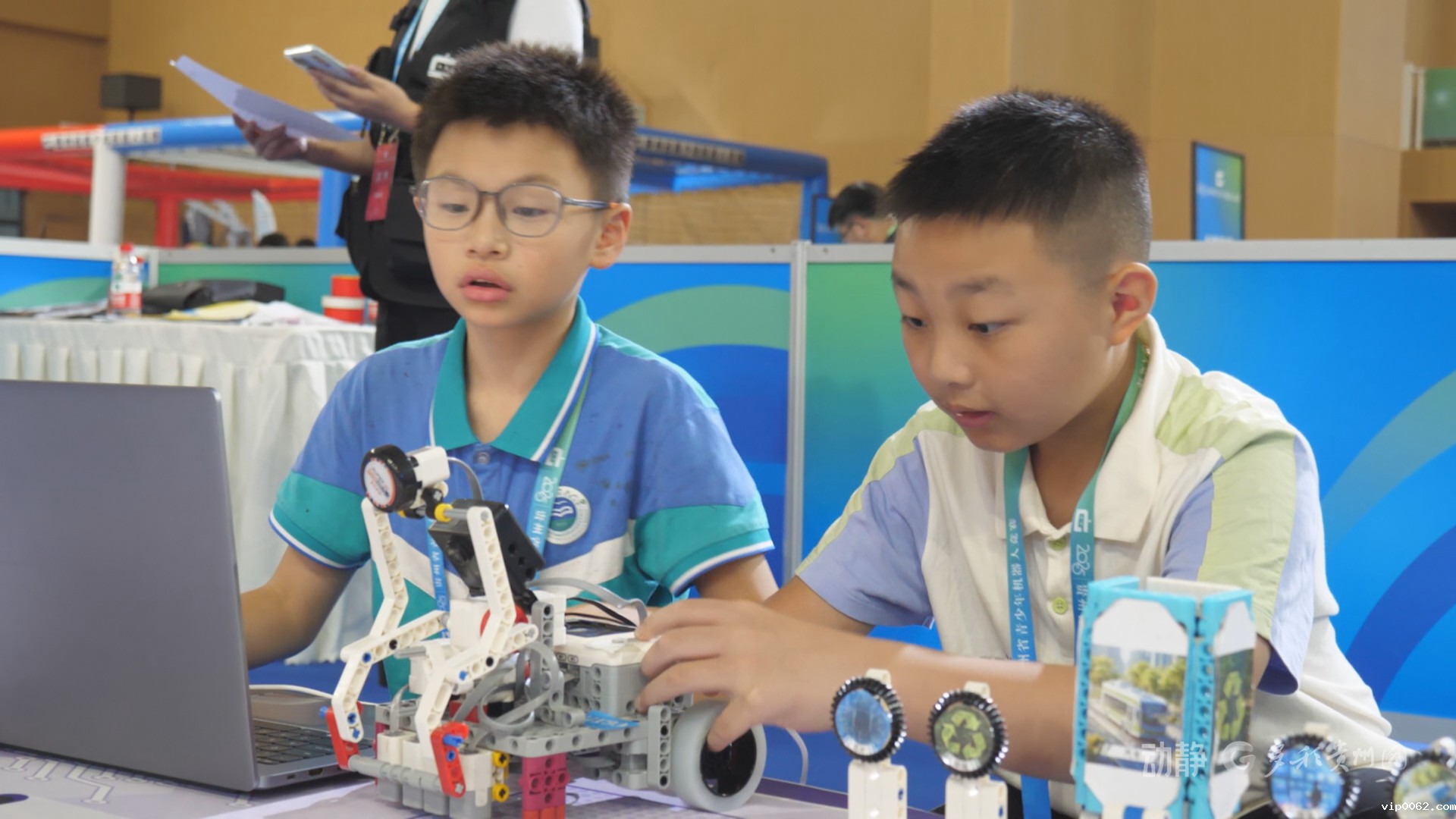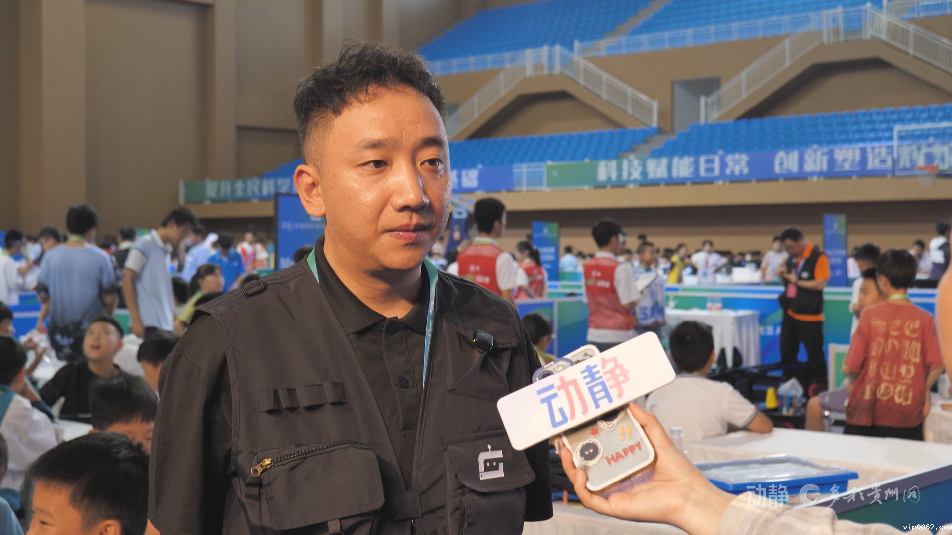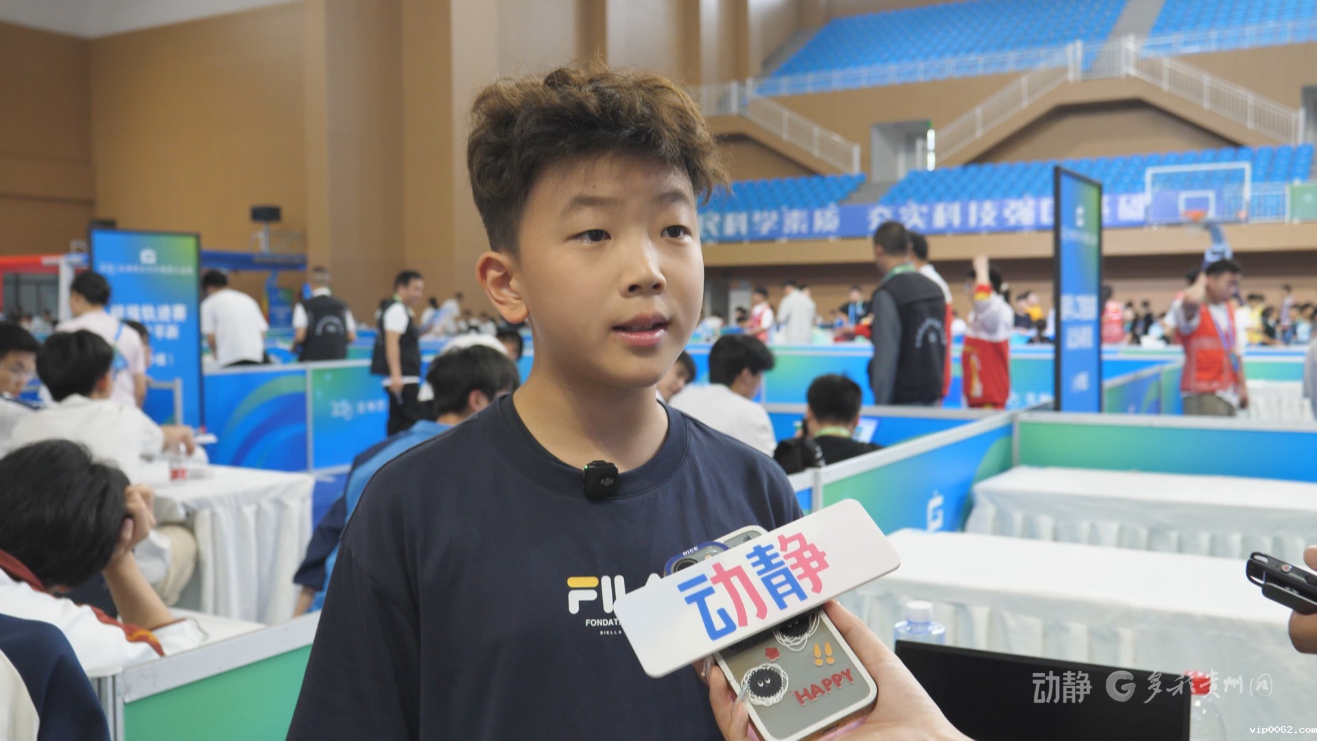 来自贵阳市南明区甲秀小学的参赛选手韩柏序和队员们报名参加的是未来之城赛项,融合了人工智能脑科学、编程和机械搭建等内容。韩柏序说:“从市赛一路比上来,能和这么多高手一起同台比赛,很紧张,也很开心,刚刚比赛下来成绩比我们平时练习效果好,希望能取得好成绩!”